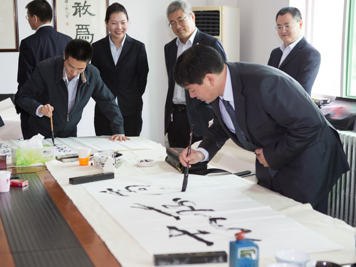 为弘扬传统文化,丰富员工业余生活,5月6日上午,半岛平台有限公司举办了首届书画艺术学习交流活动。本次活动邀请了中国书法家协会会员孟云飞博士、中国书法家协会理事张铜彦先生、中国书法家协会编辑出版委员会副主任王荣生教授、人民艺术家协会理事于瑛先生等国内知名书画大师,各位书画大师在活动现场进行了艺术创作表演,挥毫泼墨,交流技艺,为半岛平台有限公司留下了数十副墨宝,还对部分员工的书画作品进行了悉心指导。公司员工现场欣赏了书画大师的艺术创作,并聆听了有关书画艺术鉴赏知识的介绍,部分员工还在活动现场进行创作,听取书画大师的讲解示范和点评。