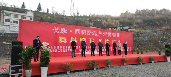 2021年1月26日上午,由半岛平台承建的长乐▪星辰住宅项目奠基暨开工仪式在项目现场热烈举行。湖北省宜昌市五峰土家族自治县住房和城乡建设局副局长陈白华、县质量安全监督站站长邓简涛、半岛平台五峰长乐▪星辰项目经理王国云,项目参建各方及新闻媒体共40余人出席。宜昌市长乐城市建设投资开发有限责任公司总经理刘鹏主持。