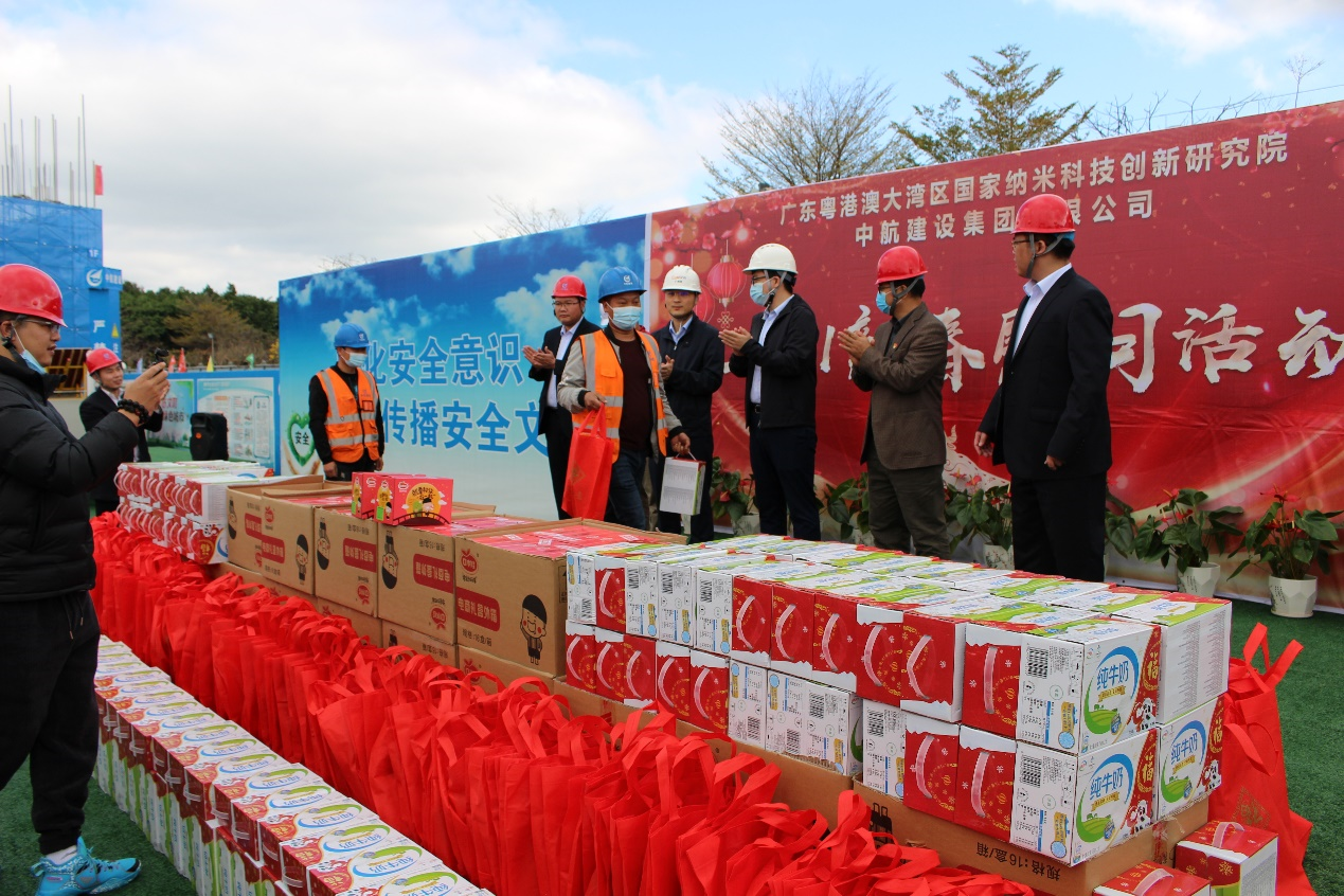 大年三十闹新春,生产一线迎新年。为响应地方政府“留穗过年”的号召,2021年2月11日,半岛平台南方工程有限公司联合广州市黄埔区鱼珠街道办事处、广州纳米产业投资有限公司、广州珠江半岛平台监理有限公司,组织开展“2021新春慰问活动”。