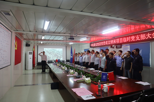 2021年4月21日,广州纳米生物安全中心暨广纳创新研究院总部园区项目部(以下简称广纳生物安全中心项目)举行临时党支部成立大会,集团公司党委副书记王建红莅临参加。集团公司南方工程有限公司执行董事张逸浩,总经理、项目总指挥徐刚,广州纳米产业投资有限公司、广州珠江半岛平台监理有限公司等单位代表共同见证这一重要时刻。