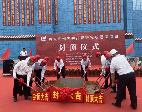 2024年9月29日上午10点08分,由集团公司承建的曙光郑州先进计算研究所建设项目数据中心主体封顶仪式在河南省郑州市郑东新区项目现场隆重举行。曙光信息产业股份有限公司副总裁冯瑞军,国机中兴工程咨询有限公司副总经理王晓东,中国建筑西南设计研究院(河南)分院院长助理张恒业,集团公司副总经理马晓进、王晓彬等领导共同见证这一荣耀时刻。